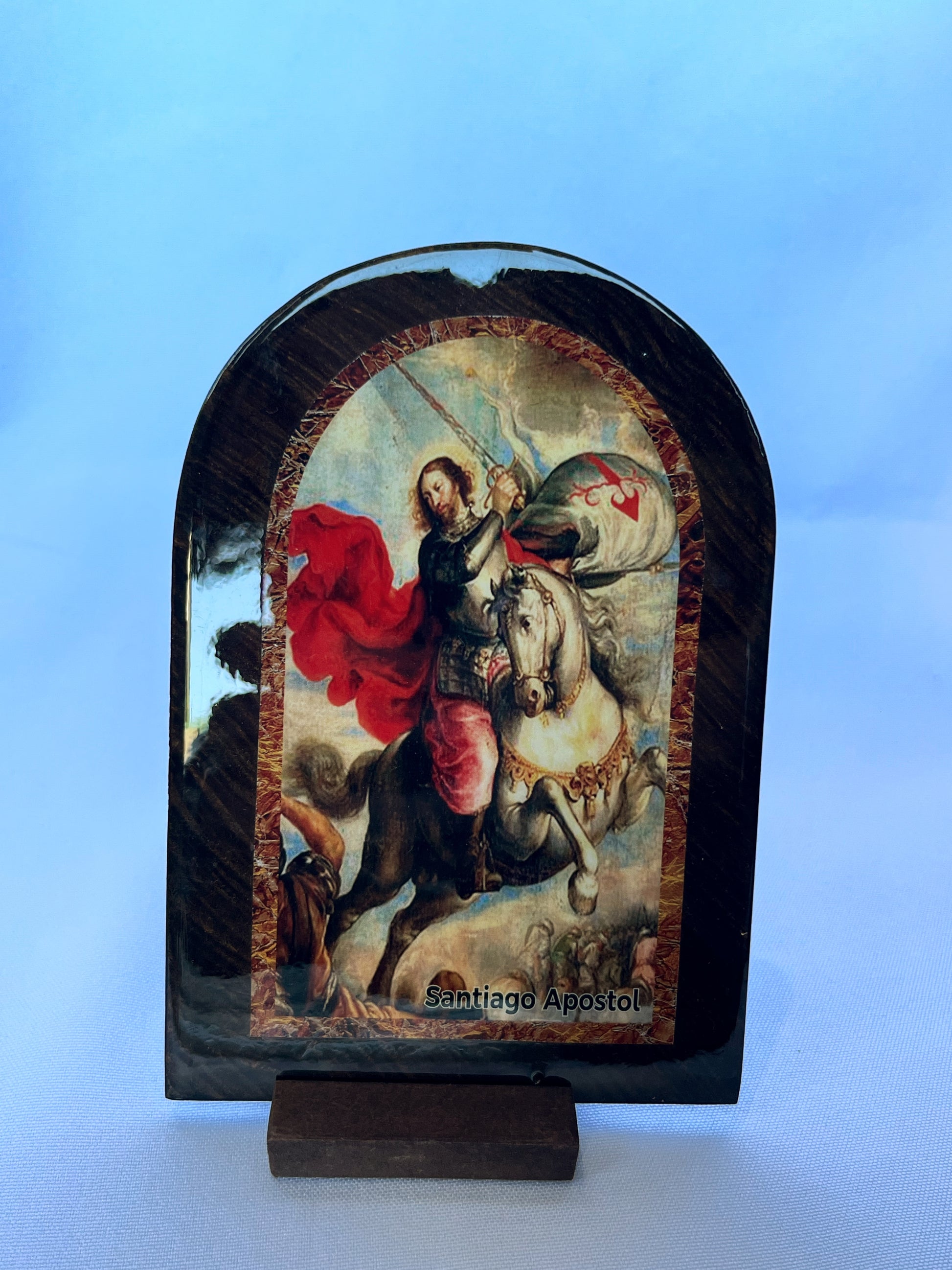 Lleva la fe contigo con esta hermosa imagen de Santiago Apóstol. Ideal para tu altar, escritorio o como un regalo especial.