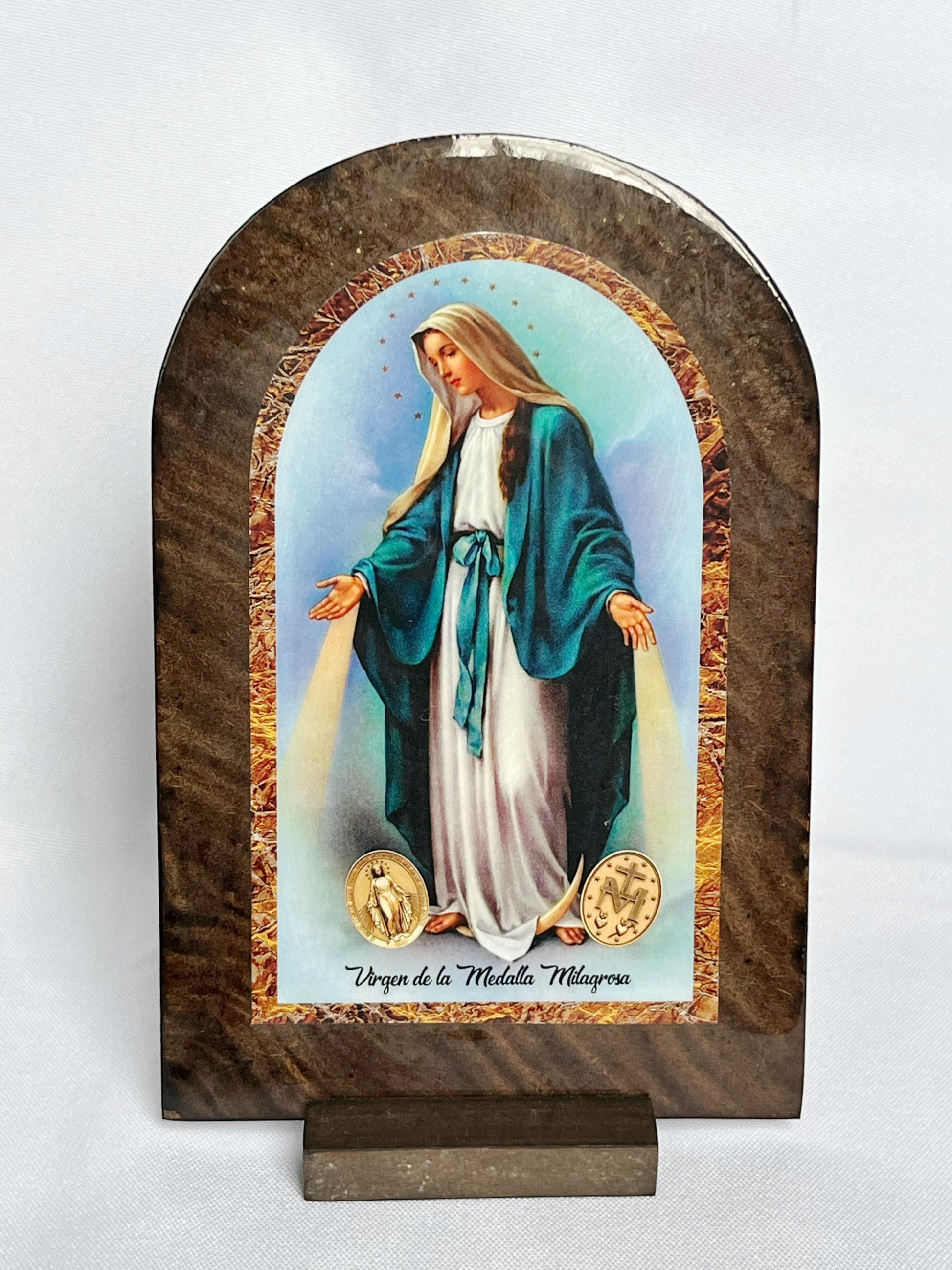 Lleva la fe contigo con esta hermosa imagen de la Medalla Milagrosa. Ideal para tu altar, escritorio o como un regalo especial.